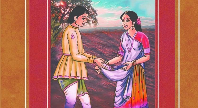 તેણે ભાઈને દોરો હેતસભર બાંધ્યો અને કહ્યું કે, ‘ભાઈ, તમને ગમે તે આપો. તમોને ગમે તે આપશો, પરંતુ મારે માટે તે સોના સમાન હશે.’